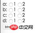 <input type="radio" value="1" name="d" />1