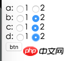 <input type="radio" value="2" name="d" />2