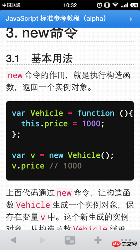 当使用new操作符 调用一个函数时,dd函数就是个构造函数;new操作符调用dd构造函数后,首先会创建一个对象,这个对象以dd.prototype为原型,同时赋值个this;在dd函数没有return语句或return语句返回的值为基本类型非对象的情况下,返回给ddObject,如果没有ddObject,那就会被丢弃~~在dd构造函数的调用过程中,执行了this.init();这个this就是新创建的对象,这个init方法就是dd.prototype中定义的init函数对象-对象在调用属性或方法时会沿着原型链查找,那么执行这个方法就会alert(1)