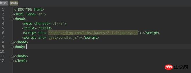 我现在有一个index.html。里面引用了webpack打包之后的js文件。如图: