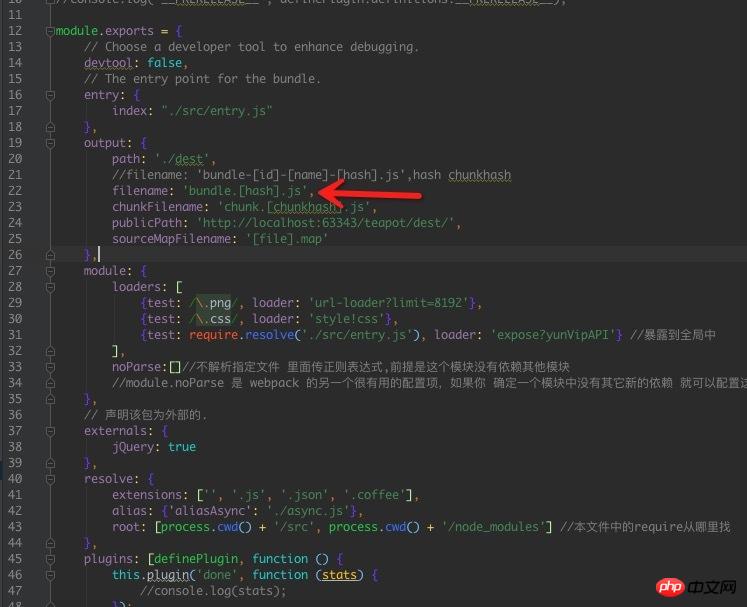 如上图,配置里的filname后面加了hash。每次entry.js改变之后,再次执行webpack.congif.js生成的bundle.js的文件名都不一样。