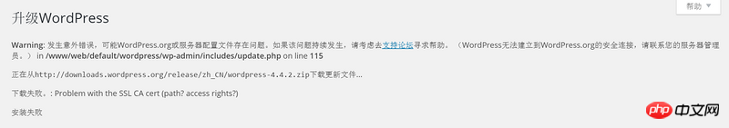 使用阿里云服务器,安装的WDCP管理系统,PHP版本是5.2.17p1,安装的WordPress版本是最新的4.4.2。在WordPress的控制面板里更新或者添加主题、插件,都会提示这个错误,小白求助,这个问题该怎么解决?