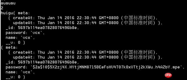 后一个user是我在加盐回调后输出的user,可以看到第二个next之后的输出password是加盐了的。