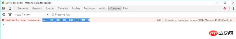 用react写了个小程序, 用chrome首次加载的时候总出现 net::ERR_CONTENT_LENGTH_MISMATCH 加载错误。然后就白屏。 刷新下就有好了。那文件大小也就500K。请问大家有没有遇到这种错误 如何解决的。以下是我项目地址http://tomato.daoapp.io/