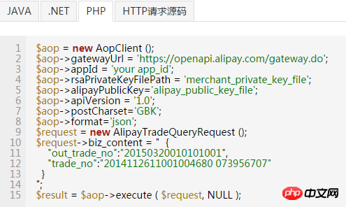 $aop->alipayPublicKey = C('alipay.alipay_public_key');//支付宝公钥
