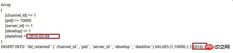 图片上边是要插入的数据,下边是getLastsql()获取的插入语句 dateline字段值变了?