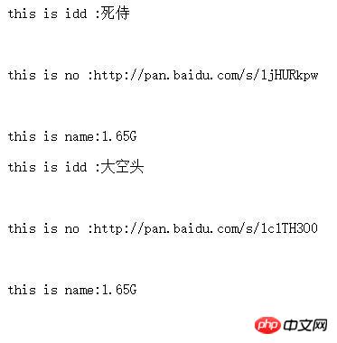按照我的想法,链接至mysql的movies表中,搜索表中name like 死侍的数据,然后输出他的name,baidu,和size,可是我只想输出死侍一条数据,但是输出结果是这样的