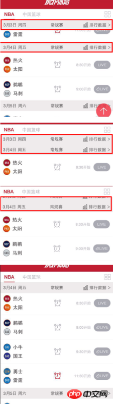 拉动屏幕向上滚,当周四碰到上面那导航栏(nba 中国篮球)