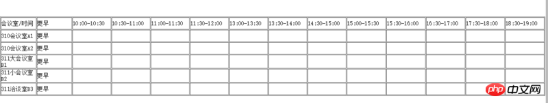 这是一个表格,要求根据从后台取出来的数组数据(备注:数组中的数据后台已经取出来了放到数组中了,数组中的对象目前是5个,但是不确定根据实际情况来)中的会议室名称和会议室时间,将对应的jishubu,这个值插入到对应的表格中