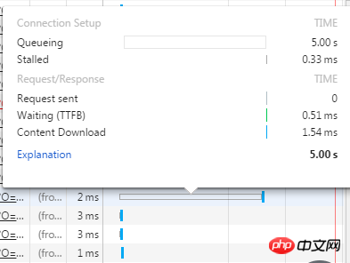 如上图所示.这JS文件是5K本事也不大.但是每次加载都会等待五秒,这样页面里面的AJAX加载的东西就会无缘无故的增加5S时间 ,甚是尴尬. 求大神帮忙解决一下