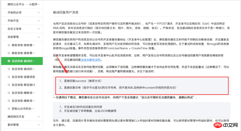 注意这里的success是指只输出这个东西 相当于echo ‘success’;并不是一个回复内容是success的xml