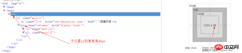 如题,子元素sub-menu 相对于父元素绝对定位。在chrome下查看父元素的高度的时候发现父元素的高度不包含子元素的高度,这是为什么??