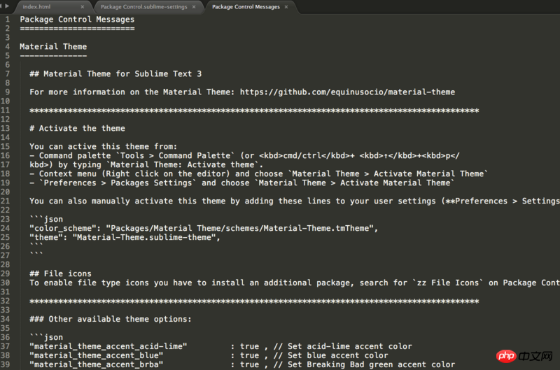 通过package install下载一个theme下来第一次都会自动打开这个主题的相关配置说明,