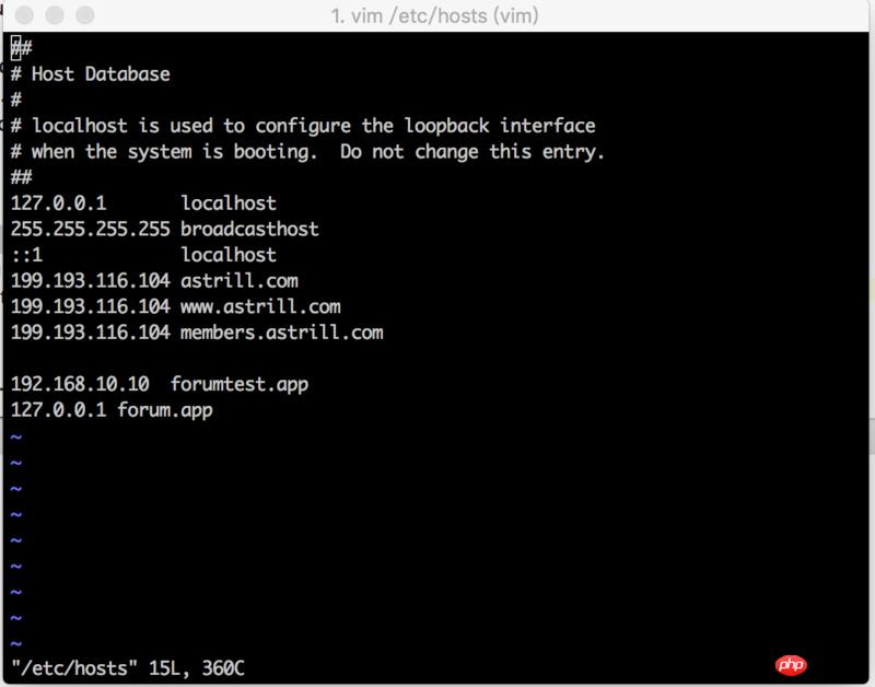 相关配置也按照教程配置了,但是forum.app返回nginx默认页面。换成192.168.10.10 forum.app会返回502。请问各位大大,哪里出问题了呢? 配置如下~