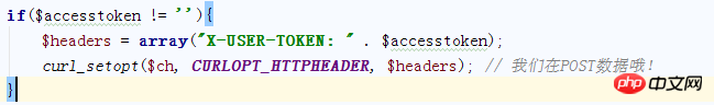 看你的第一张图,accesstoken应该是放到http header里用的。所以你应该要用这个参数:CURLOPT_HTTPHEADER,设置 HTTP 头字段的数组。格式: array('Content-type: text/plain', 'Content-length: 100')