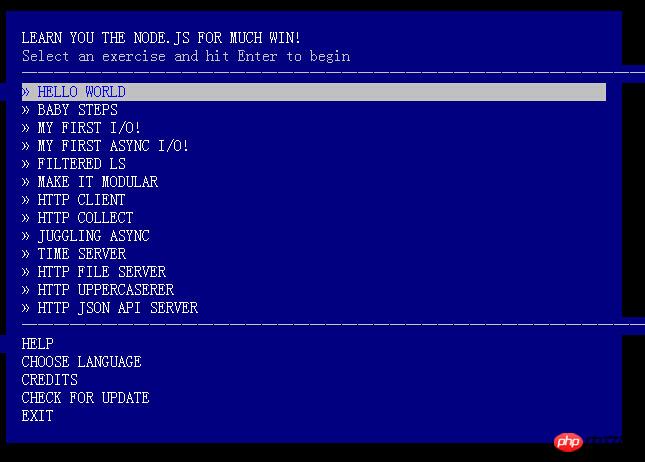 然后输入 learnyounode就可以进入交互界面了。通过choose language可以选择语言。
