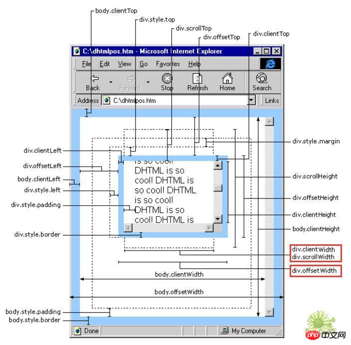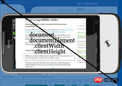 借用上面的图片,offsetWidth是指包括滚动条的部分,而document.documentElement.clientWidth是去除滚动条的部分,所以这两个值是不一样的。既然ppk指出viewport和clientWidth相关,那么计算标准也应该以clientWidth为主
