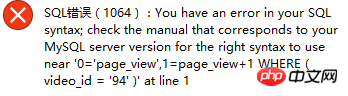 UPDATEvideo SET 0='page_view',1=page_view+1 WHERE ( video_id = '94' )