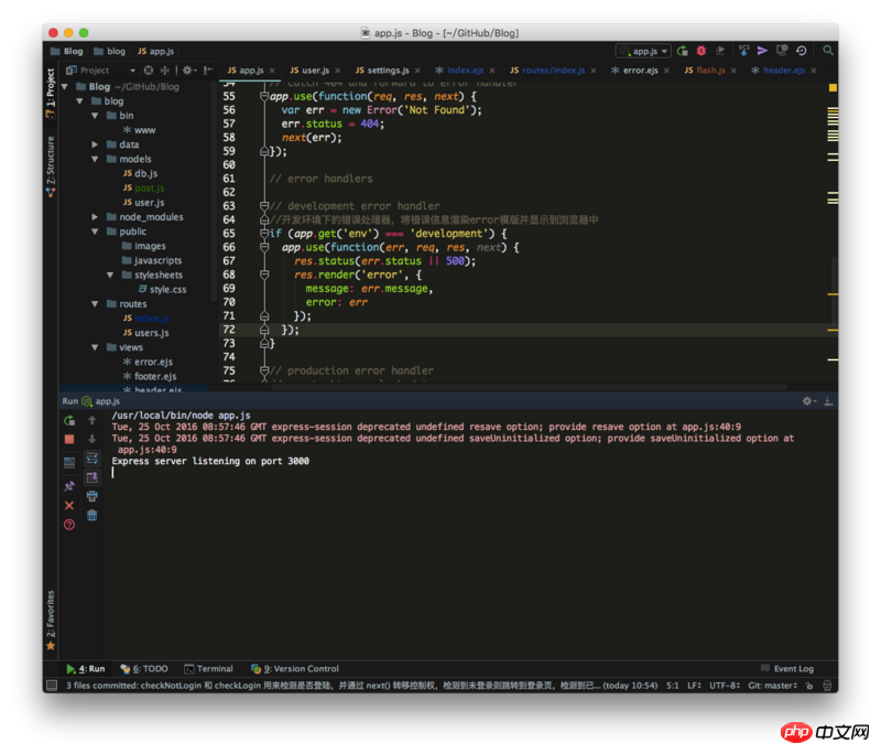 /*注意:为了维护用户状态和 flash 的通知功能,我们给每个 ejs 模版文件传入了以下三个值: