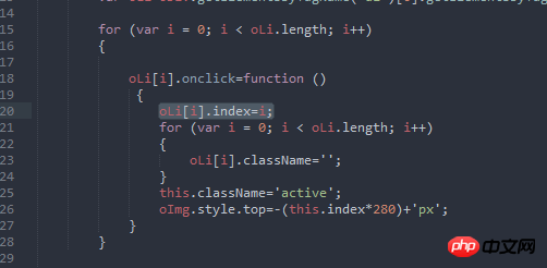 这个时候就不报错了吧?但是你会发现,点击oLi的某个元素依旧报错,看打印出来的 i值, 你会发现值为 oLi的长度,这个时候就是闭包的问题了,闭包的意思你可以理解为可以获取外部对象的值,也就是说只要闭包没有结束,外部被引用的对象不会被销毁,但是你要记住,闭包引用的是变量的整个对象,而不是某个阶段的值,所以当使用闭包的时候,你获取到的永远是执行的时候引用对象最后的值,这个时候你就明白为什么 i的值为 oLi.length, 因为闭包的执行是在循环完成之后,所以当执行到 oLi[i].index = i , 此时 i 的值为 oLi.length, 所以边界溢出,报错。 解决的方法就是把i作为一个参数传入并即时执行: