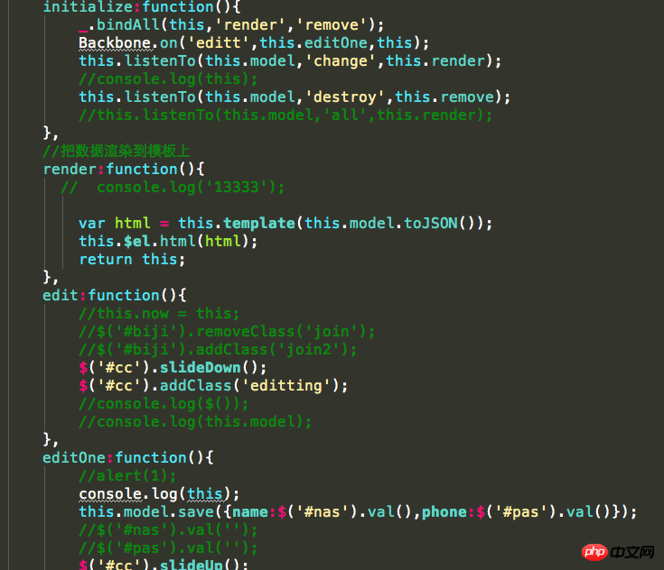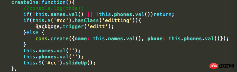 楼主应该是click #bt_edit之后,显示mess,点击保存之后,调用createOne,其中判断是编辑,马上trigger edit事件,然后执行editOne.但是你在createOne中,trigger事件之后,又马上清空了phones和names.所以你在editOne中保存的时候,就没值了!