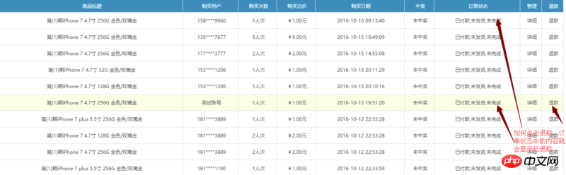 当点击退款操作,更改数据付款状态值,然后再用ajax局部更新即可.