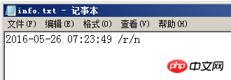 $fileName="R:/info.txt"; $str = date("Y-m-d H:i:s",Time()) .' '.$strArr ."/r/n"; fwrite($file, $str);