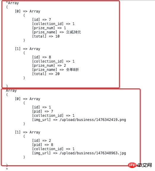 Array ( [0] => Array ( [id] => 7 [collection_id] => 1 [prize_num] => 1 [prize_name] => 立减20元 [total] => 10 ,**[url_img]=> /upload/business/1476342419.png** ) [1] => Array ( [id] => 8 [collection_id] => 1 [prize_num] => 2 [prize_name] => 全单8折 [total] => 20,**[url_img]=> /upload/business/1476348963.jpg**)