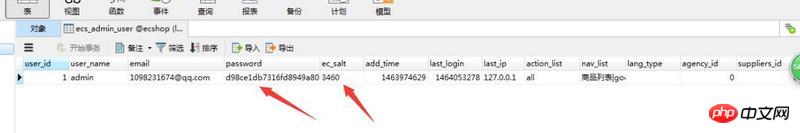 我将:password改成了:7fa7d7b812aad9129912bb979e150eb1 encrypt改成了:1451密码:ecshop123这样就OK了