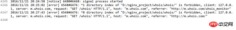 log中访问的目录是D:/nginx_project/whois/whois,可能题主其实是想访问D:/nginx_project/whois下的东西,那么就是配置哪里出了问题.