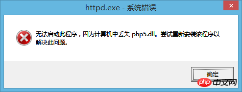 上网搜一下,php5.dll文件丢失,可以下载php5.dll文件放在对应目录下。