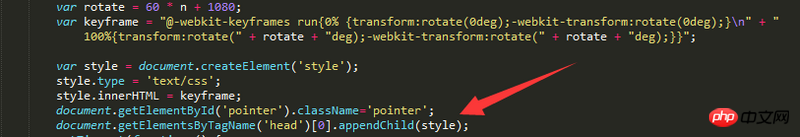 一定要这种写法,转动后删除id="pointer"标签的属性(class='pointer')