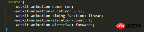 -webkit-animation:run 2.5s linear forwards; /* Safari 和 Chrome */