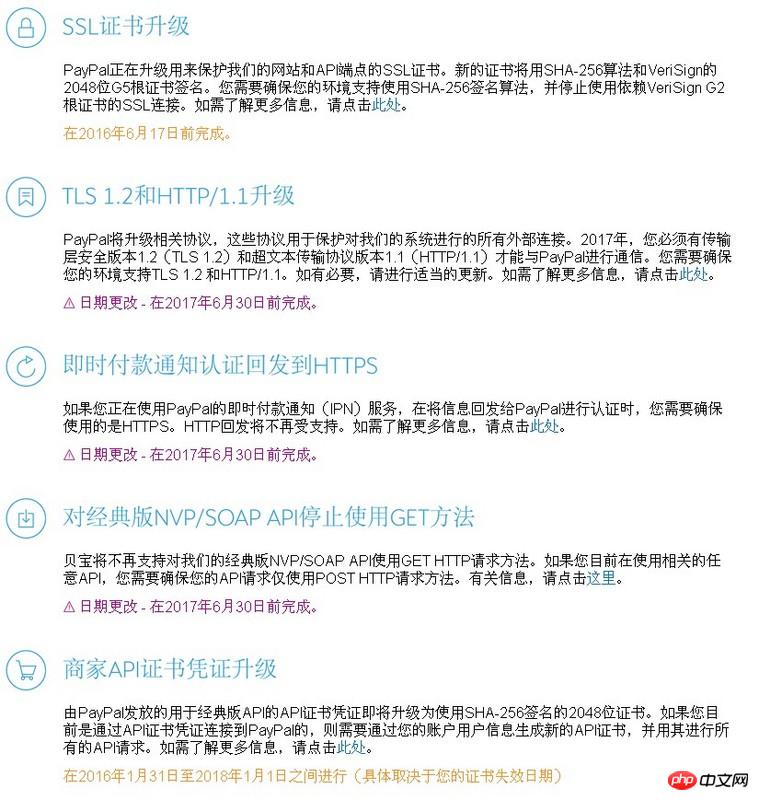 我是自营网店,使用linux apache mysql php跑的zencart程序,最近接到paypal的邮件提醒,说是paypal要升级,需要让服务器也要升级,如图: