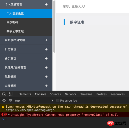 提示"removeClass"为空,说明页面加载的时候js代码那有问题。