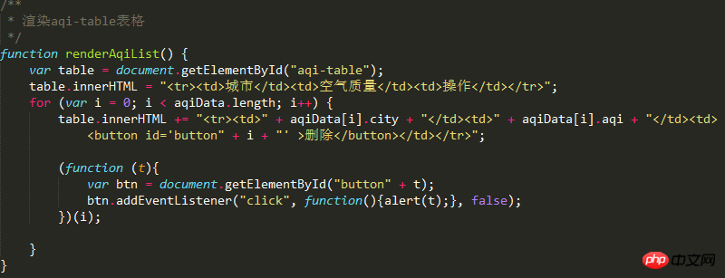 js中将用户输入的信息保存在aqidata数组中,每次用户新添加一组数据,数组增加一项。根据数组内容重新渲染表格。