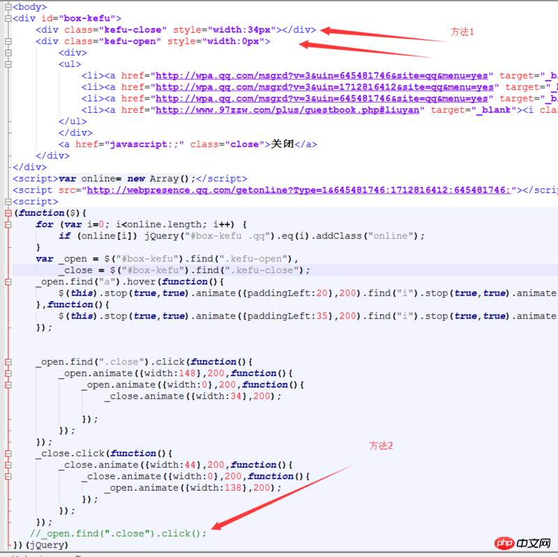 用了个在线客服代码,但是默认是打开的,我想默认是关闭的