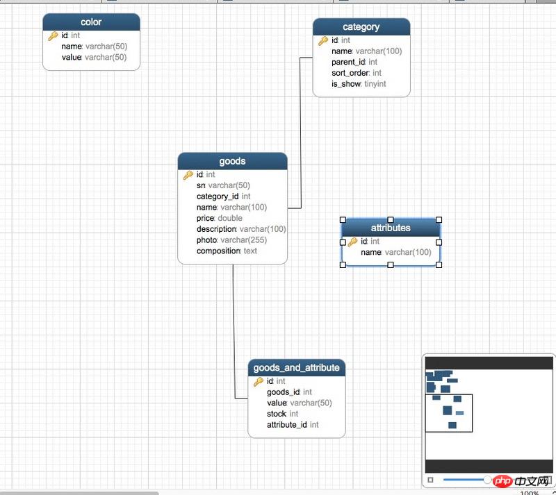 我正在做商城数据表的设计,目前有一个商品表goods、商品属性表attributes、商品与属性关联表goods_and_attributes: