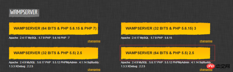 第二步,进入wamp server的官方网站下载64bit对应php版本的WAMP软件,截图如下: