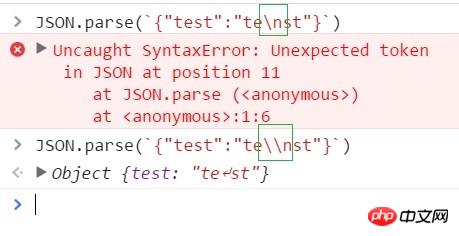 json里的字符串(双引号之间的字符串)发生了换行了吧,请把“\n”换成“\\n”。