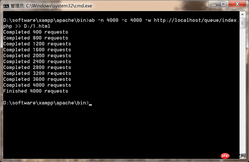ab -n 1200 -c 1200 -w http://localhost/queue/index.php >> D:/1.html