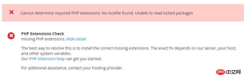 在安装项目时,提示php的版本不对和php扩展缺失,但是在提示信息中却没有具体的需要的版本和具体缺失的扩展是那些,扩展缺失提示的那个列表是空的。