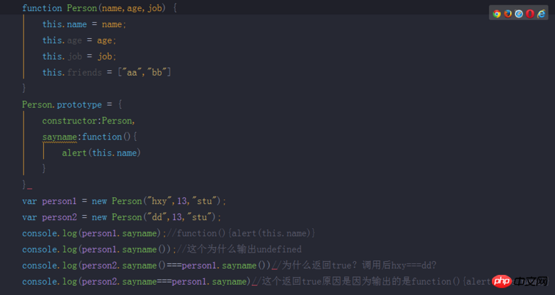 console.log(person2.sayname() === person1.sayname()) 因为undefined === undefined
