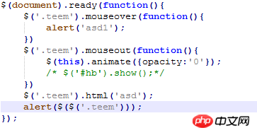 你这个teem的标签是不是teem.js动态生成的,如果是teem.js动态生成的。有可能是因为你绑定事件的时候标签还没有生成。试试用事件委托:$(document).mouseover('.teem',function () {alert('xxx')});