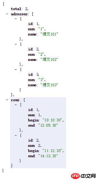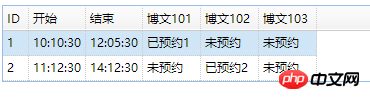 const data = { total: 2, address: [ { id: 1, num: "1", name: "博文101" }, { id: 2, num: "2", name: "博文102" }, { id: 3, num: "3", name: "博文103" } ], rows: [ { id: 1, num: 1, begin: "10:10:30", end: "12:05:30" }, { id: 2, num: 2, begin: "11:12:30", end: "14:12:30" }, ] }; const columns = [[ { field: "id", title: "ID" }, { field: "begin", title: "开始" }, { field: "end", title: "结束" } ].concat(data.address.map(a => ({ field: `address${a.id}`, title: a.name })))]; const map = data.address.reduce((m, a) => { m[a.num] = `address${a.id}`; return m; }, {}); const gridData = { total: data.total, rows: data.rows.map(r => { const row = { id: r.id, begin: r.begin, end: r.end }; Object.keys(map).forEach(key => { row[map[key]] = "未预约"; }); row[map[r.num]] = `已预约${r.id}`; return row; }) }; $(function() { $("#grid") .datagrid({ columns: columns }) .datagrid("loadData", gridData); });