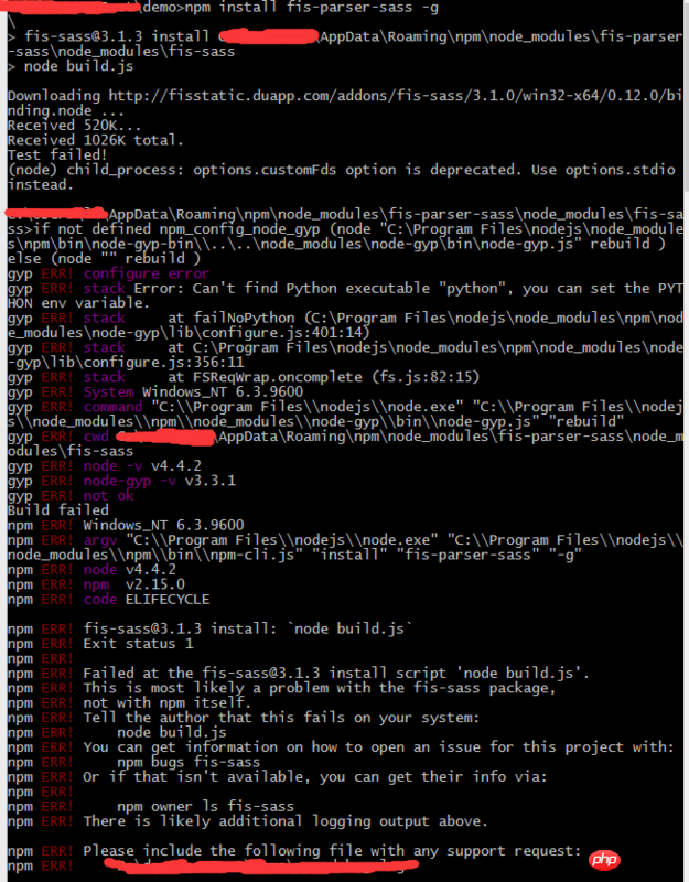 问题2:fis3 release时提示无法加载fis3-parser-sass插件,可不管是npm还是淘宝镜像下安装此插件均报错: