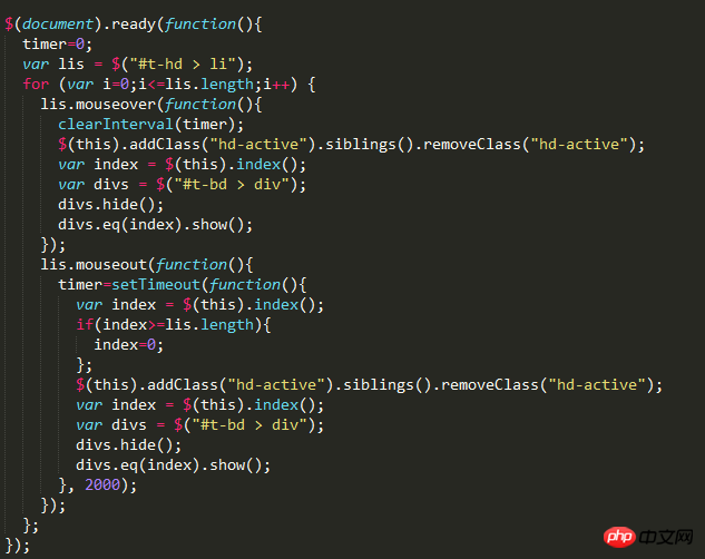 我写了一个自动的TABS,但mouseout部分无法正常运作。只有mouseover有效果。