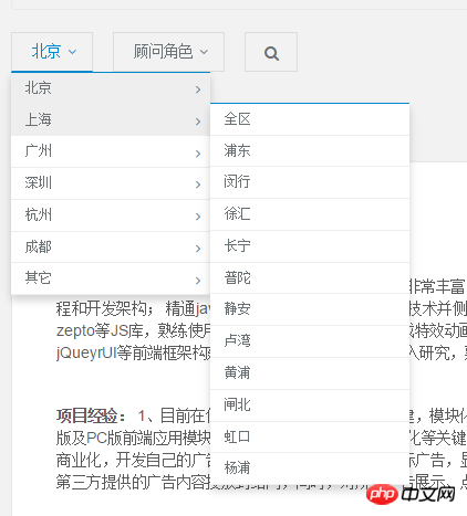 想实现如下图所示的多级select,(可能有三级,比如浦东下面再分几个区域),html怎么写?是每个select的option添加一个hover事件来显示一个列表,然后再为列表项添加hover事件?