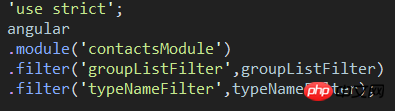 var demo = angular.module('demo', []) demo.filter('typeNameFilter', function() { return function(input) { switch(input) { case 'a': return 1 case 'b': return 2 default: return 'noop' } } })