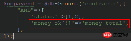medoo里同一表里两字段对比该怎么写?